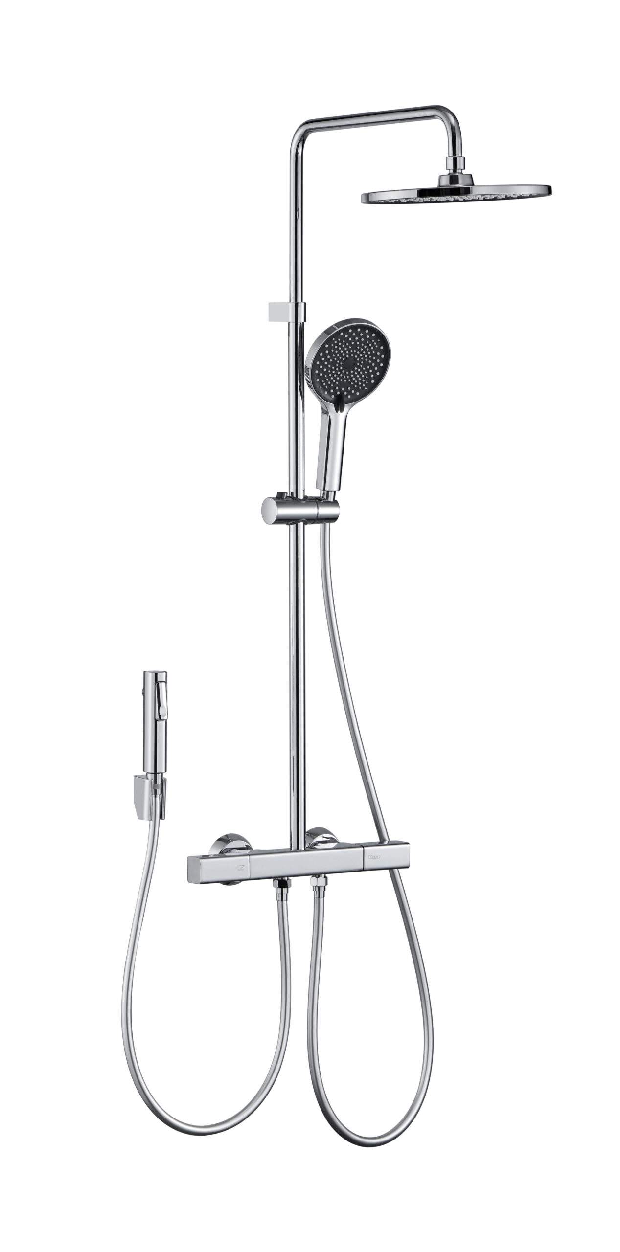 A versatile brass shower system designed for modern bathrooms. Features four independent water outlets including a rainfall top shower, handheld shower, lower faucet, and multi-functional brass spray gun—ideal for hygiene cleaning and diverse household needs. Durable chrome surface delivers long-lasting shine and easy maintenance.