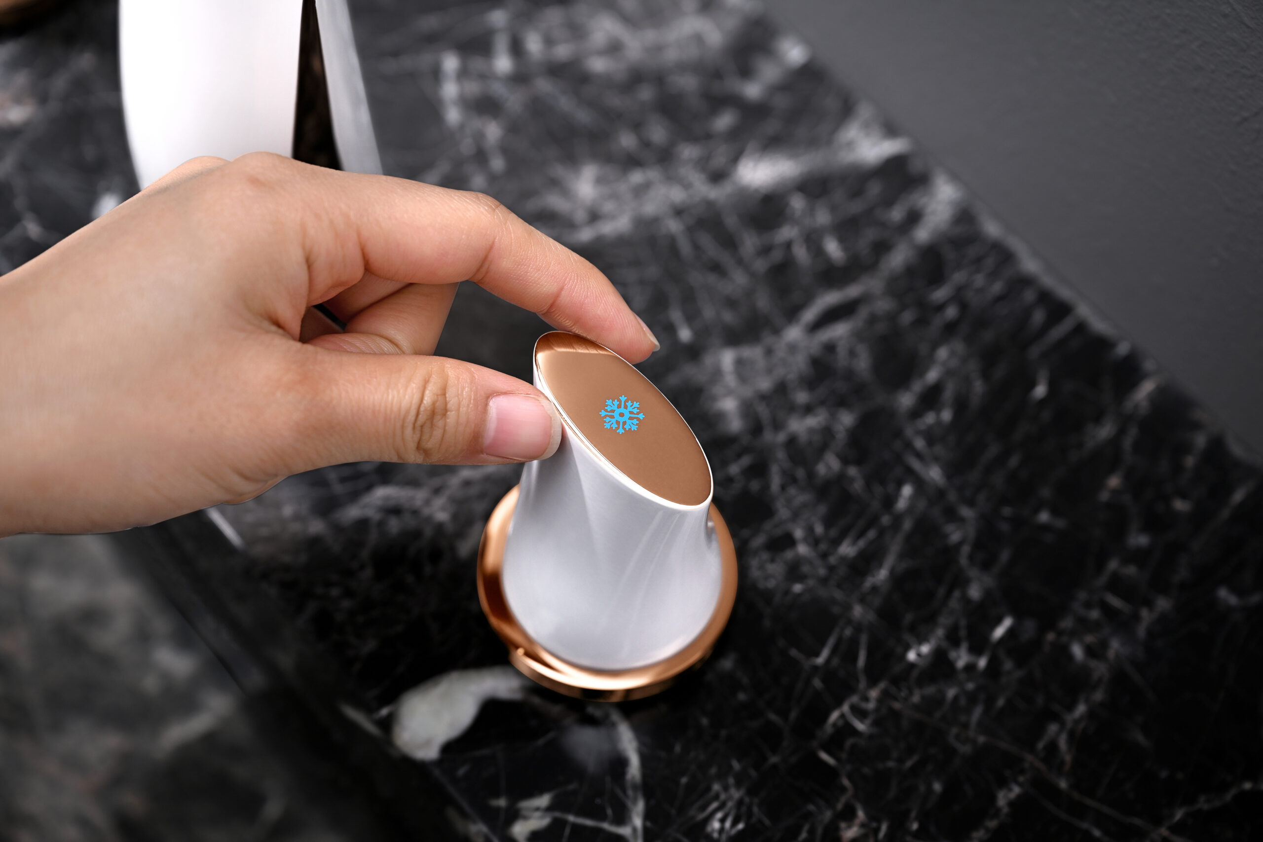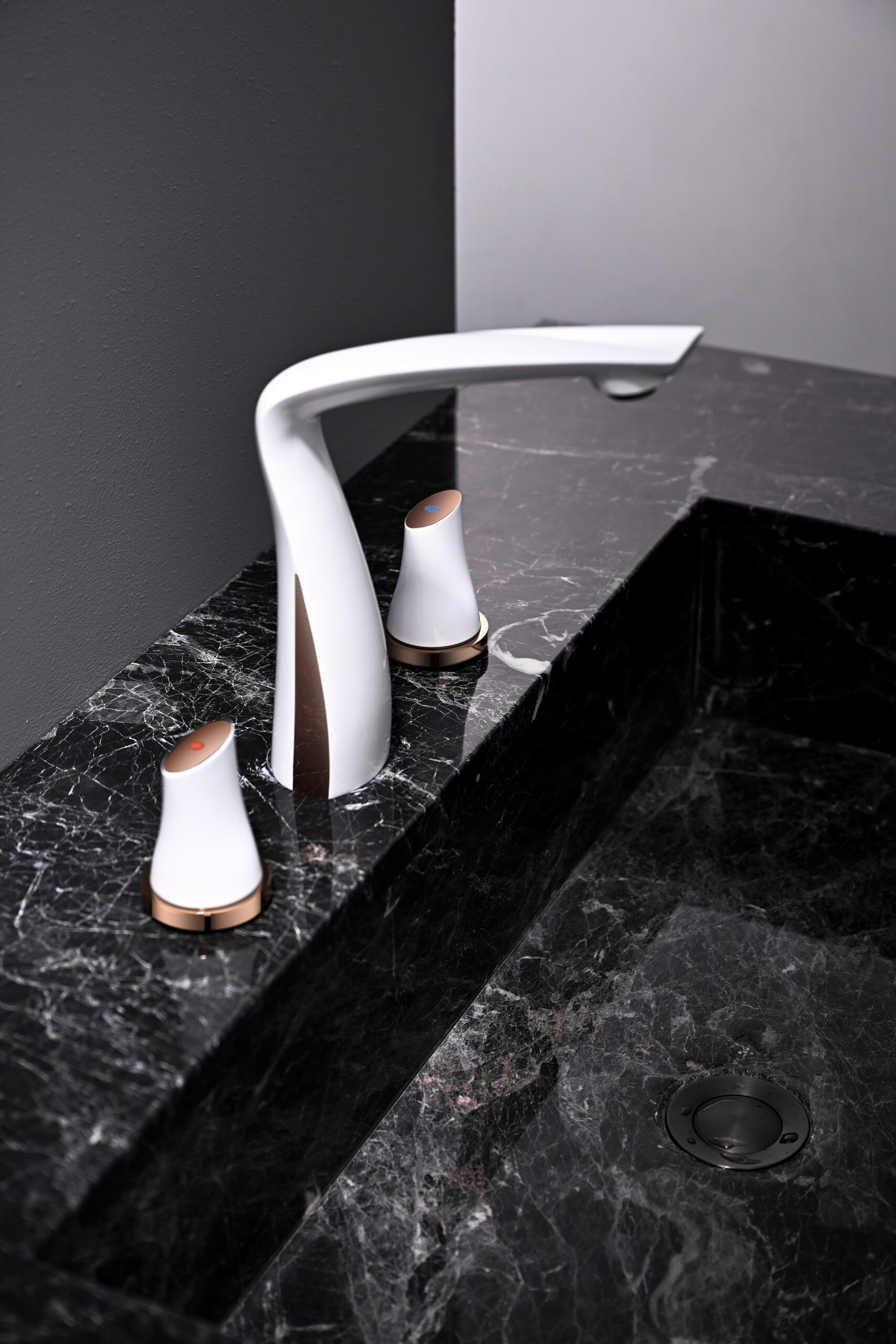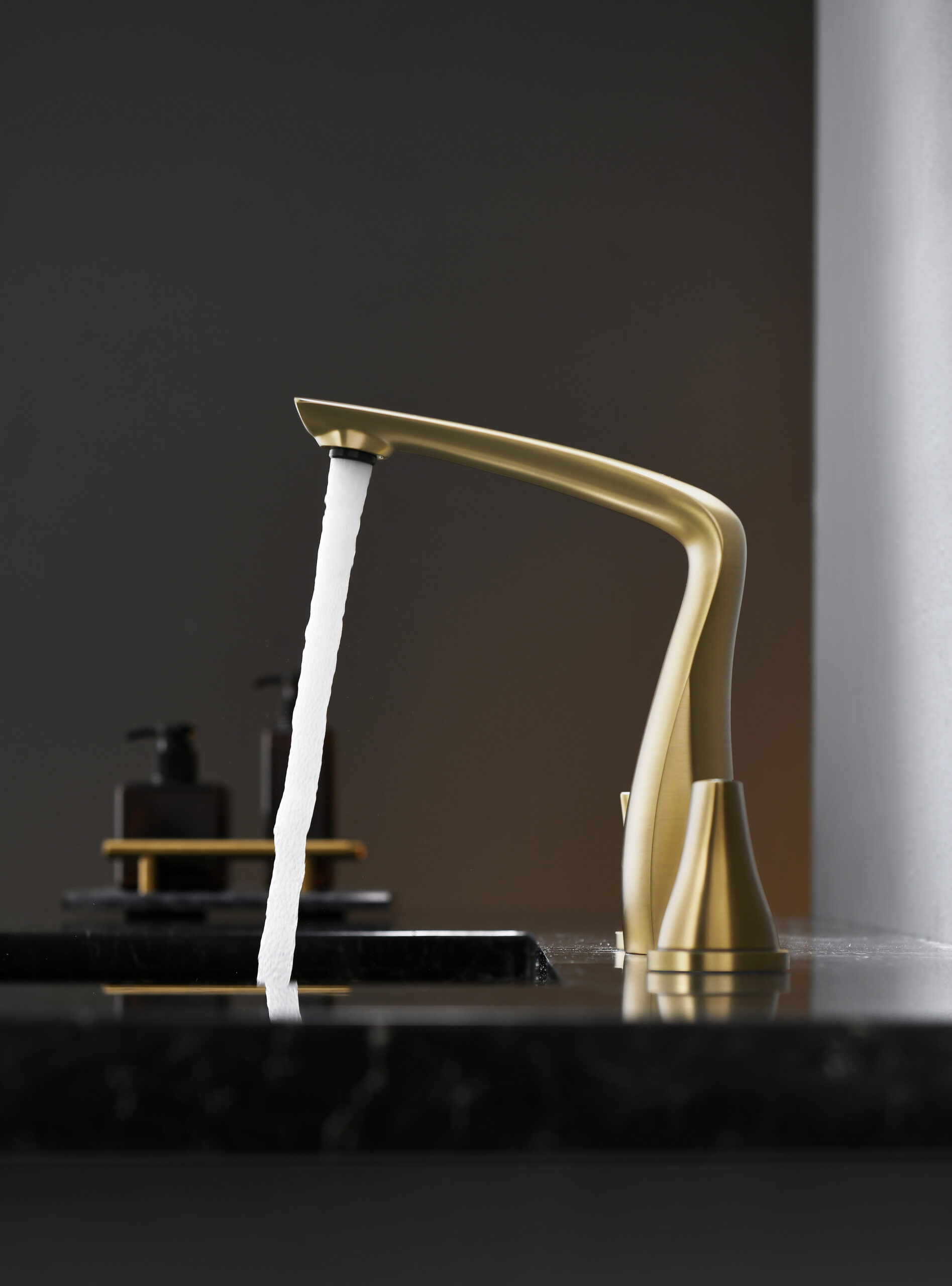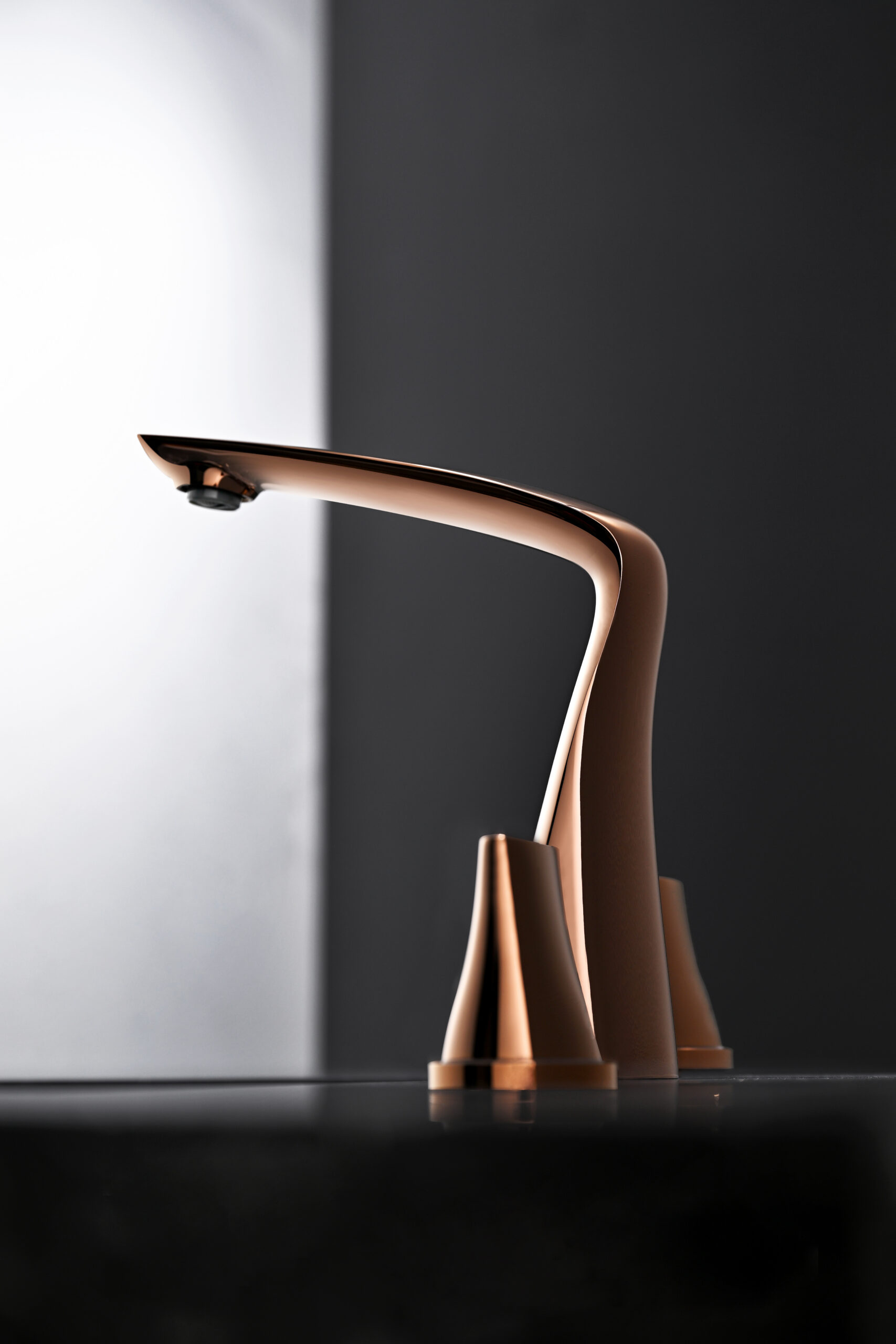 A modern basin faucet set featuring a sculpted, streamlined body and separately mounted handles for precise water control. With soft curves and a refined brushed finish, it adds a subtle luxury touch to premium bathrooms. Made entirely from solid brass, it combines elegant aesthetics with reliable durability for everyday use.