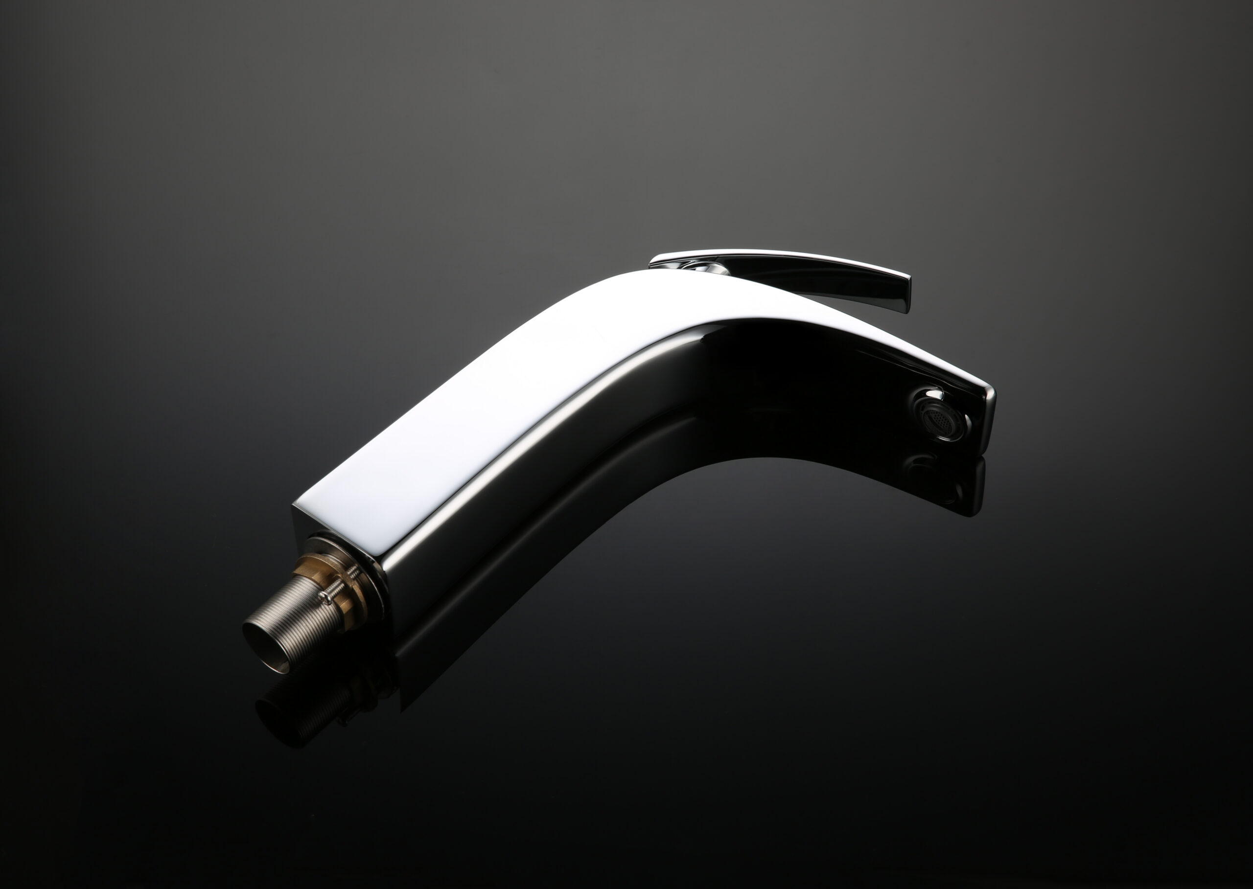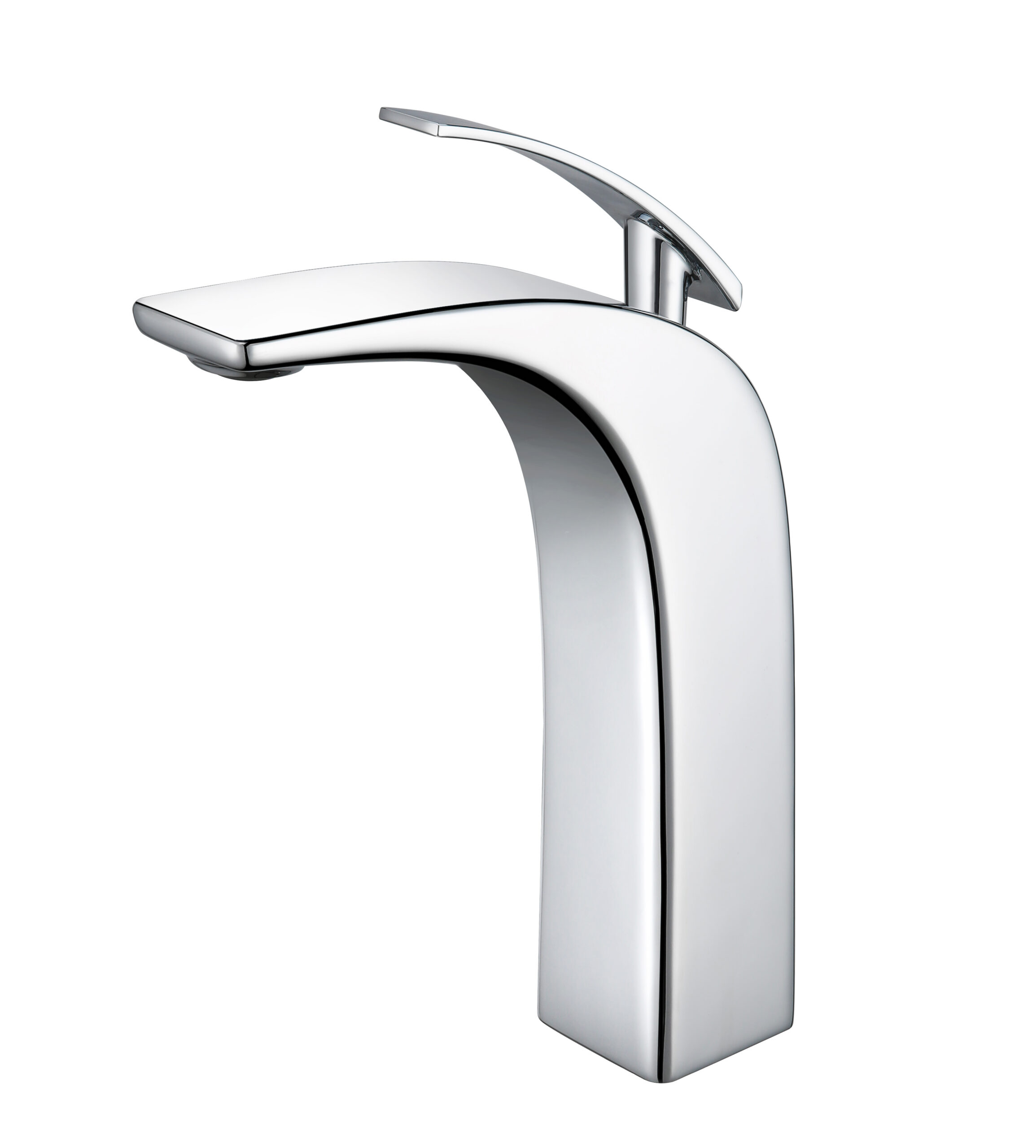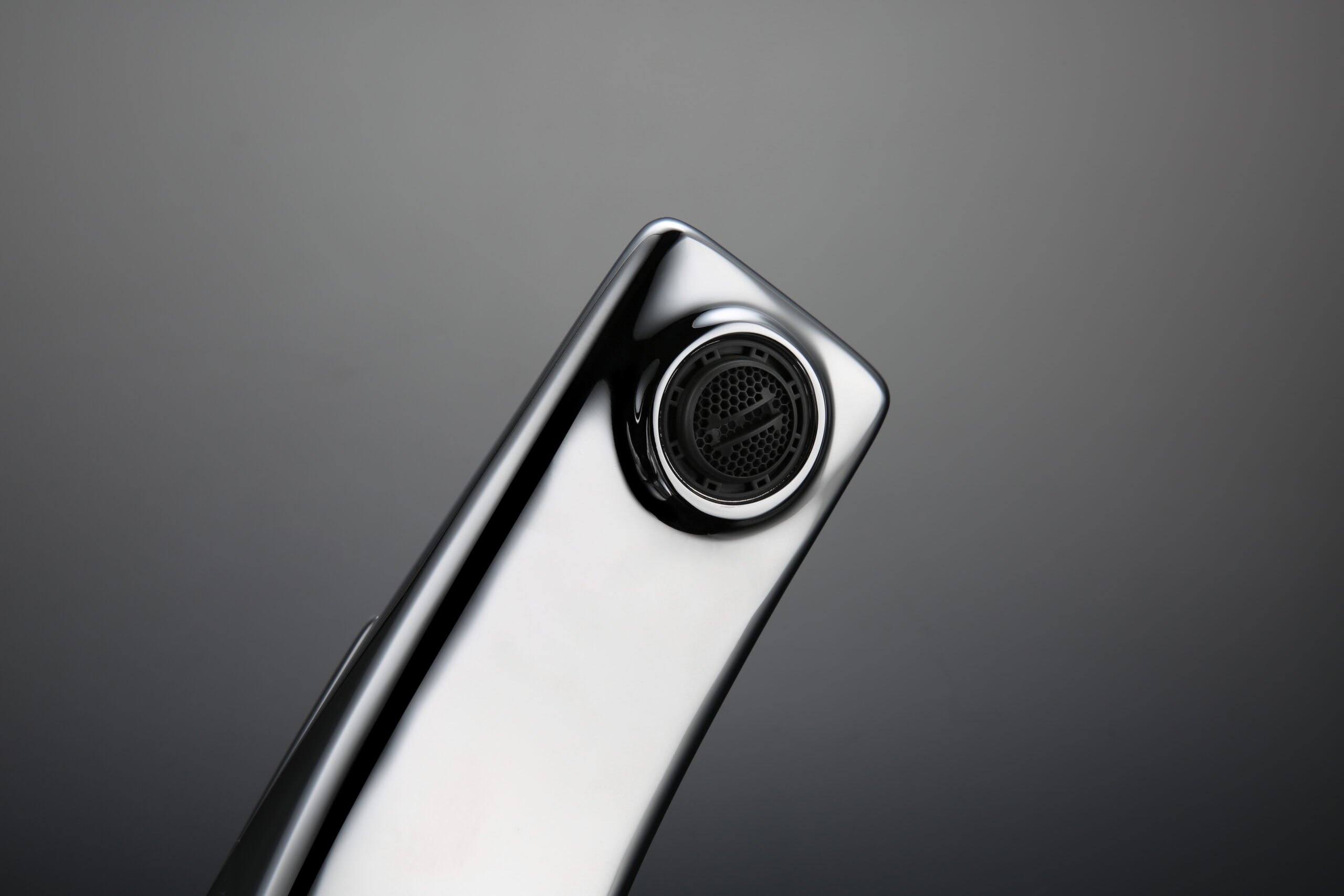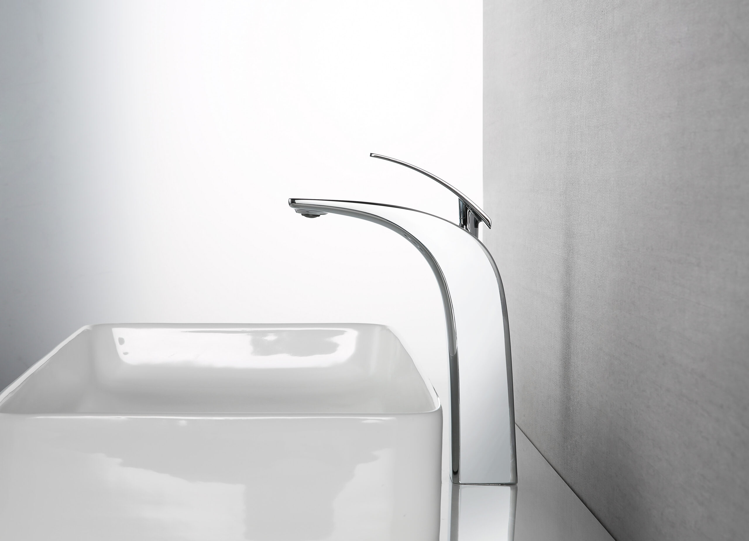 This tall chrome basin faucet features a refined curved silhouette, designed for modern luxury bathrooms.
