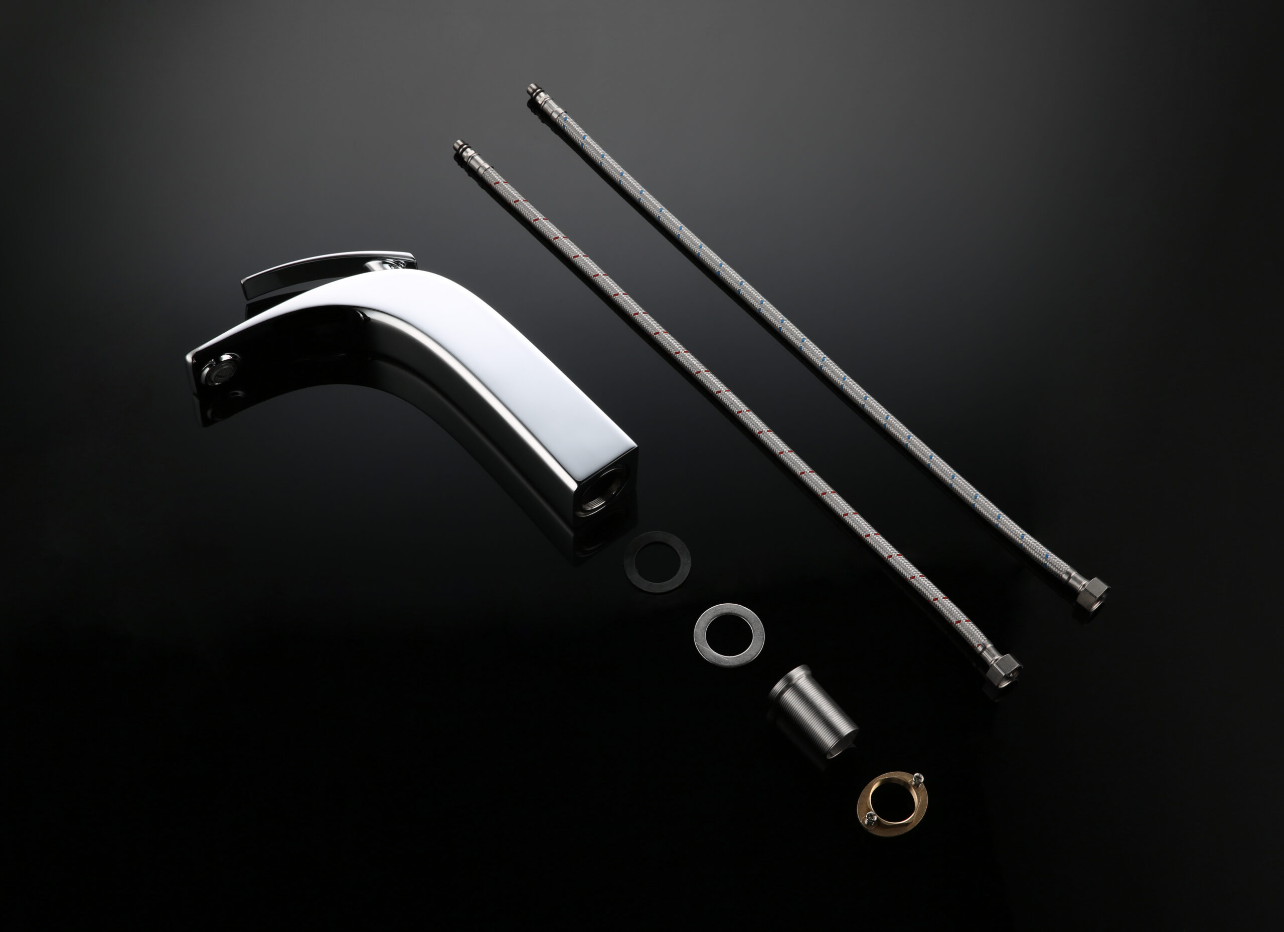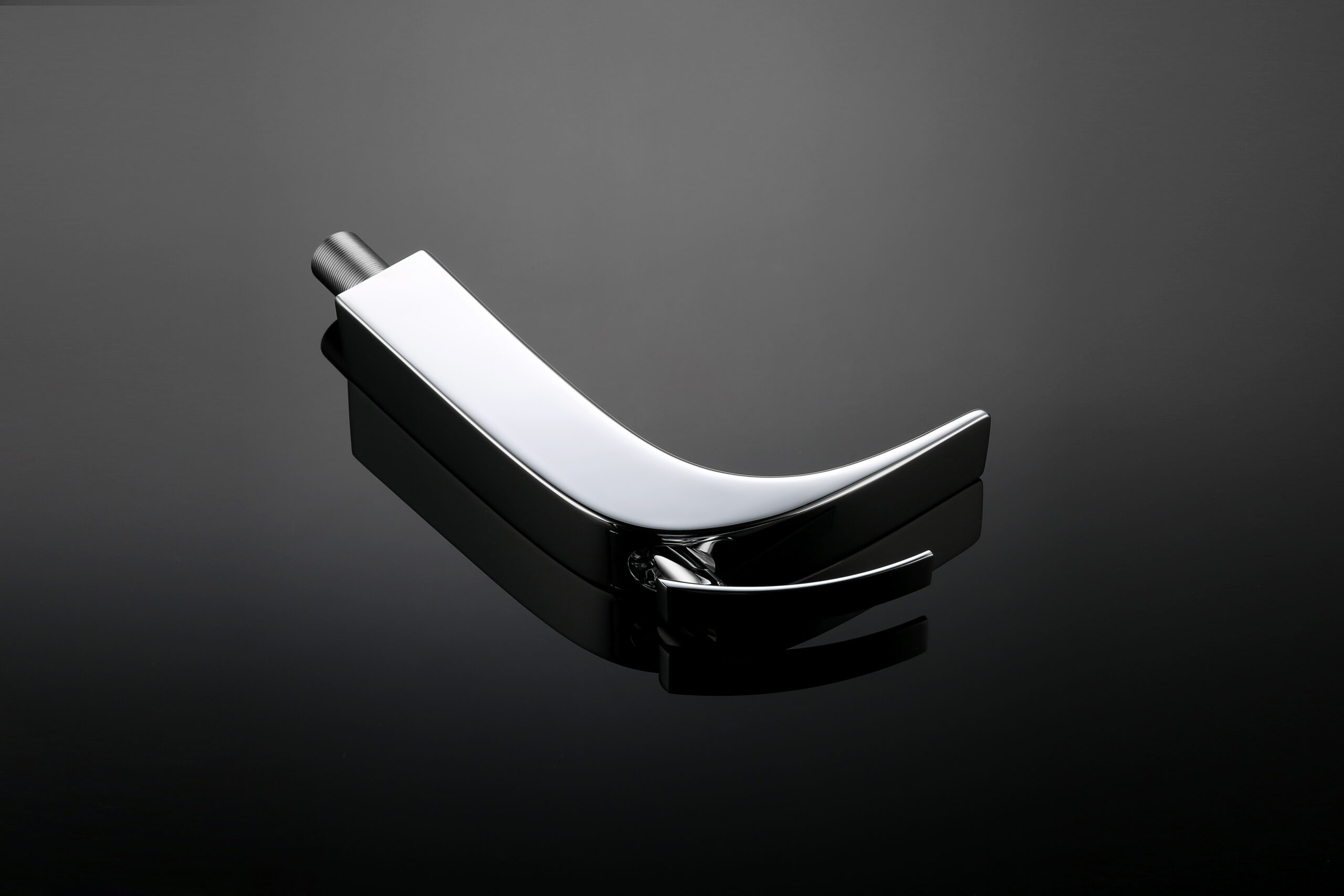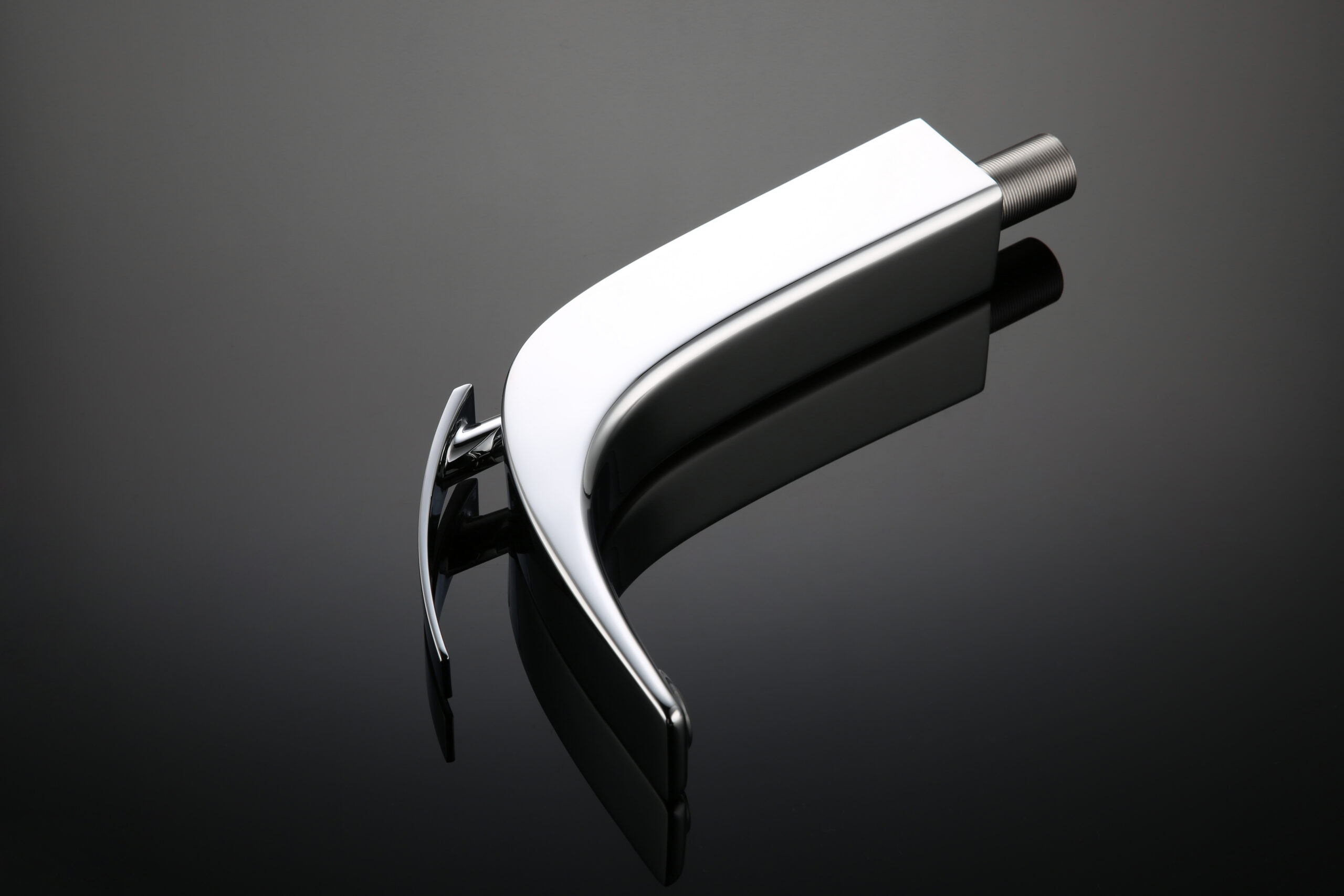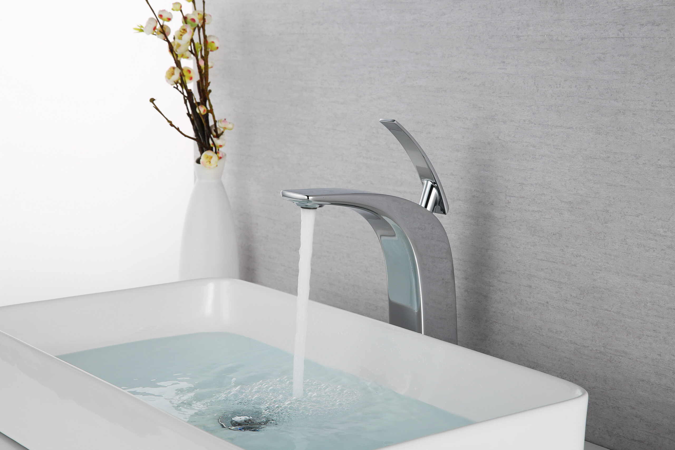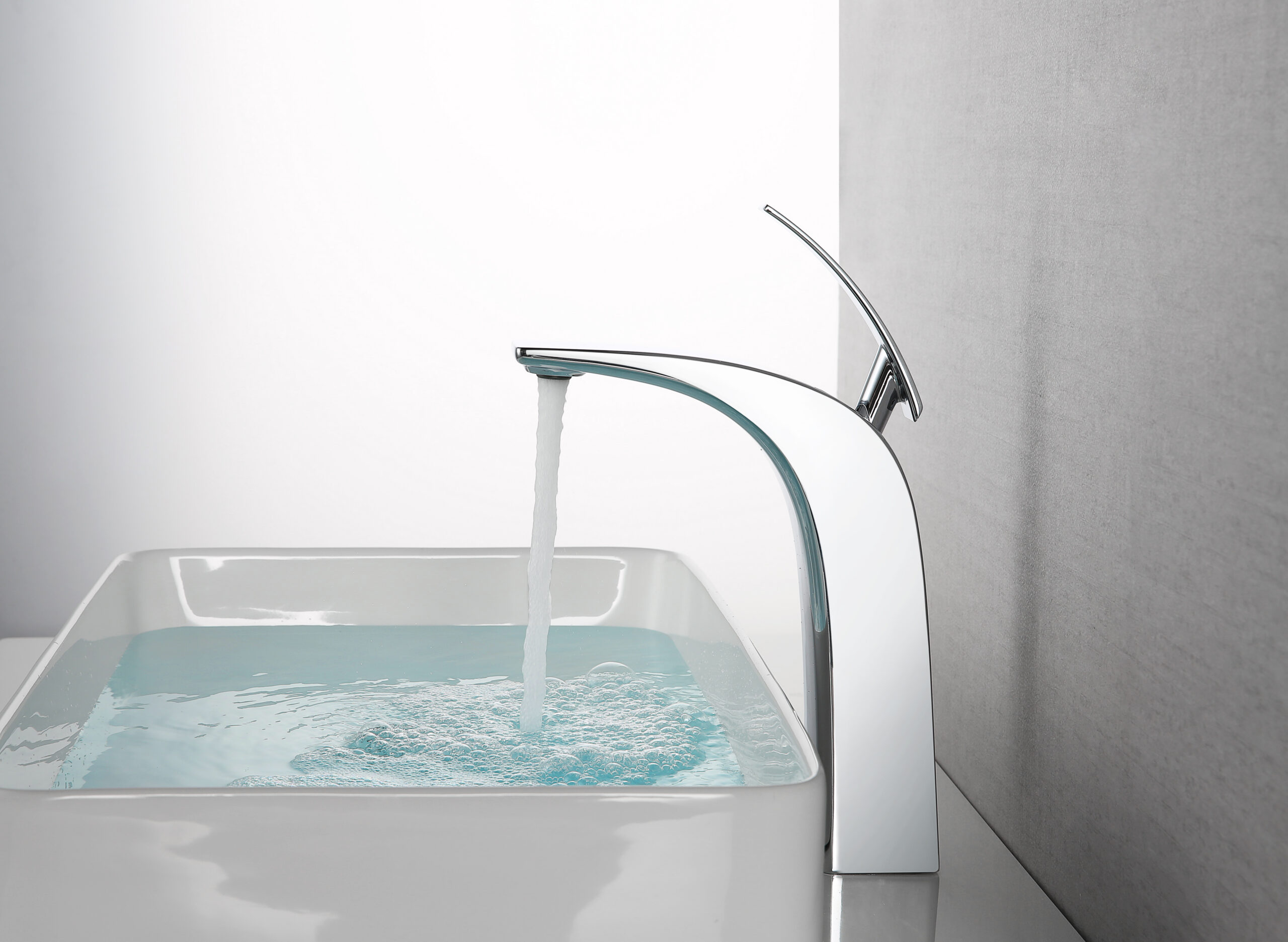 This tall chrome basin faucet features a refined curved silhouette, designed for modern luxury bathrooms.