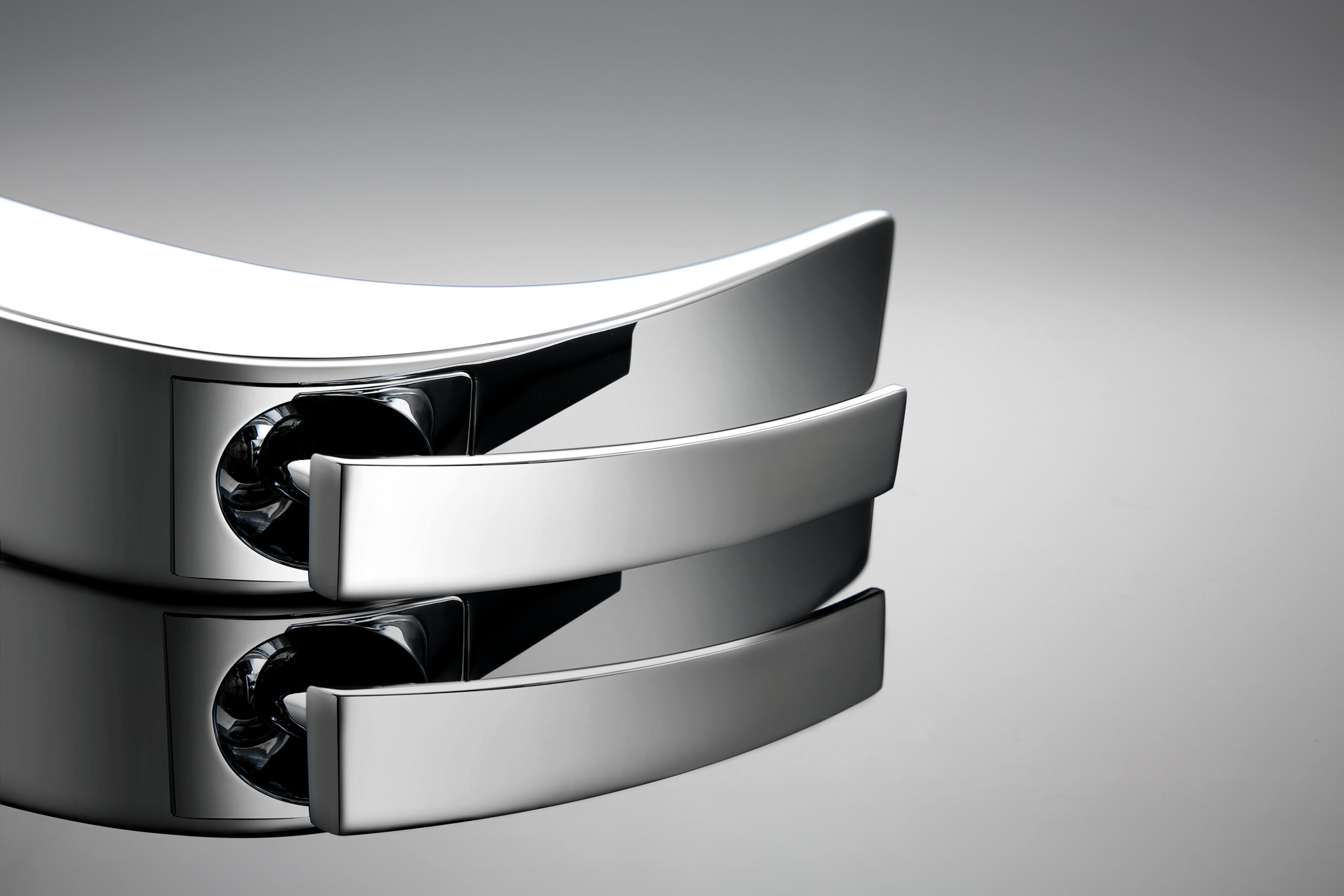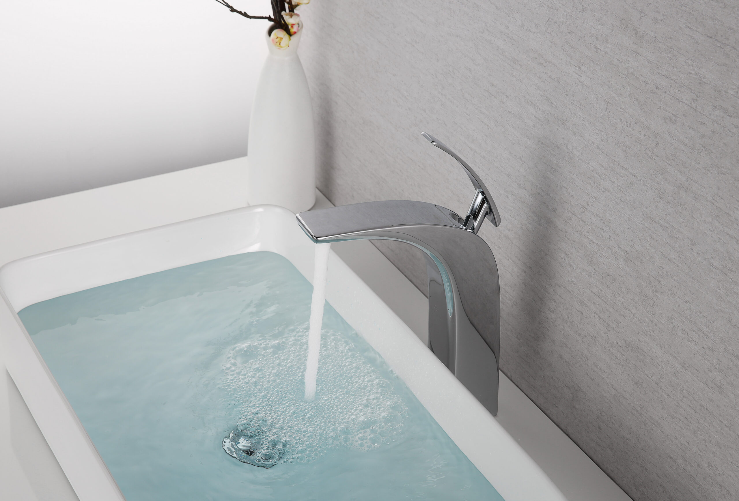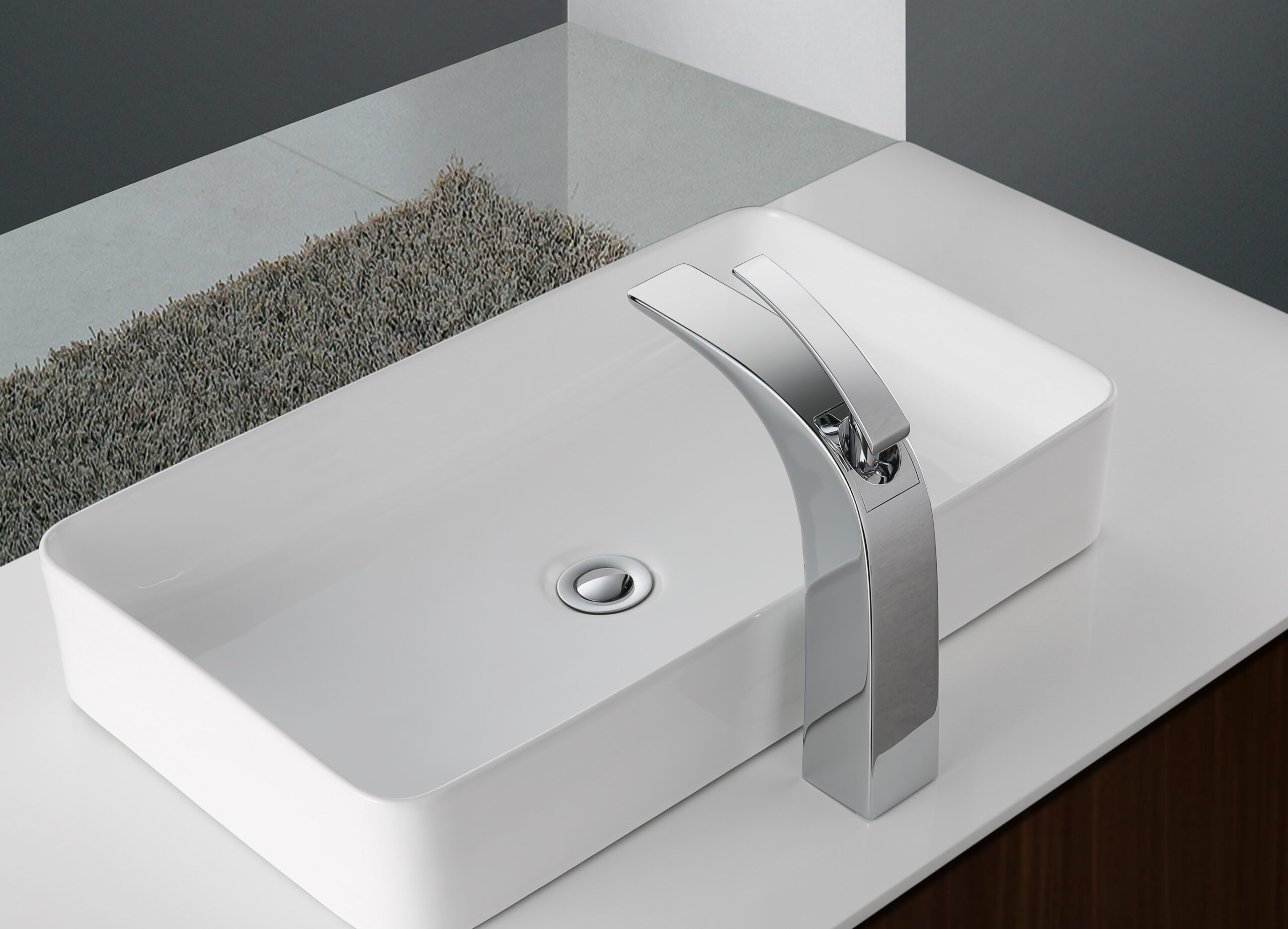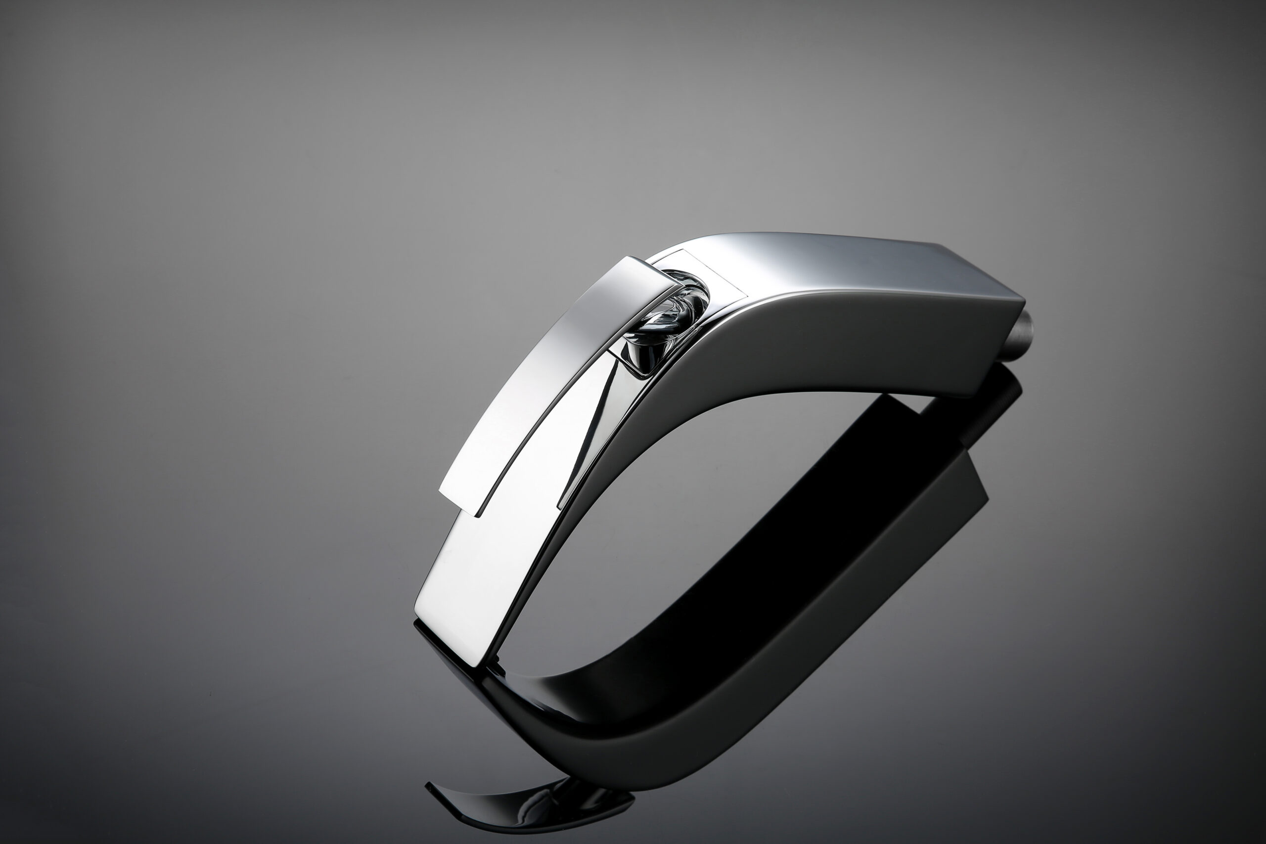This tall chrome basin faucet features a refined curved silhouette, designed for modern luxury bathrooms.