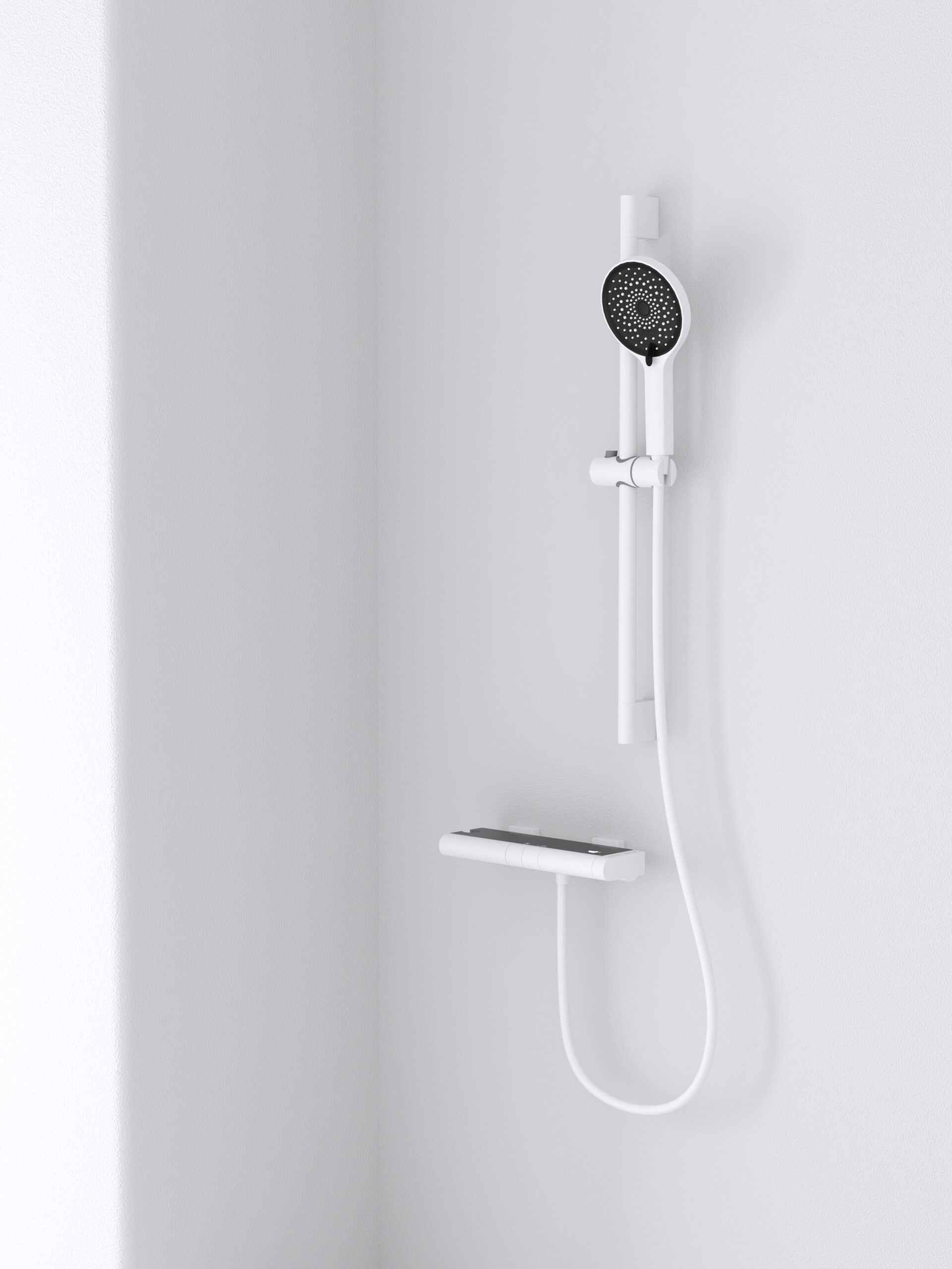Designed for modern minimalist bathrooms, this matte white shower mixer set features a brass thermostatic-style body (non-thermostatic), a sleek handheld shower, and a downward water outlet for bathtub filling. The adjustable slide bar ensures flexible shower height, while the matte finish delivers a clean visual aesthetic. Perfect for homes seeking both beauty and practicality in their bath area.
