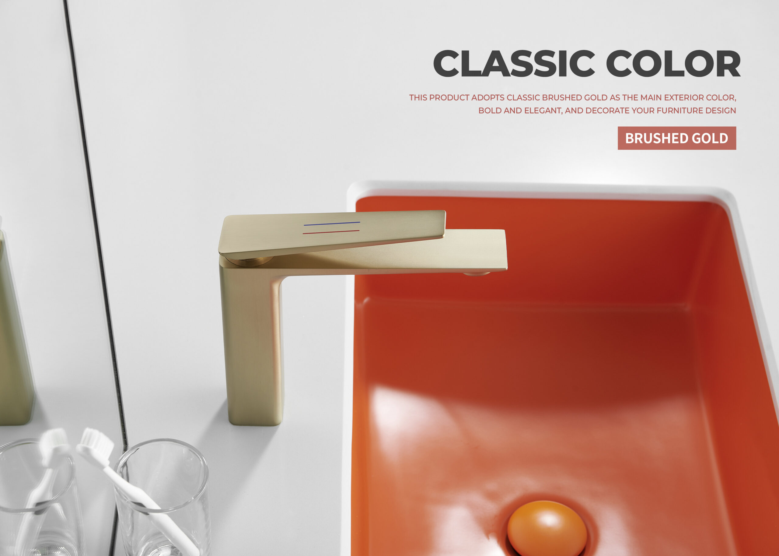 This modern basin faucet features a slim, minimalist design with a premium brushed gold finish. Built from lead-free solid brass and equipped with a durable ceramic cartridge, it ensures reliable performance for everyday use. The aerated water flow is soft and splash-free, while the single-handle control allows effortless adjustment. Multiple color options are available, making it ideal for homeowners, designers, and hotel projects seeking a contemporary upgrade.