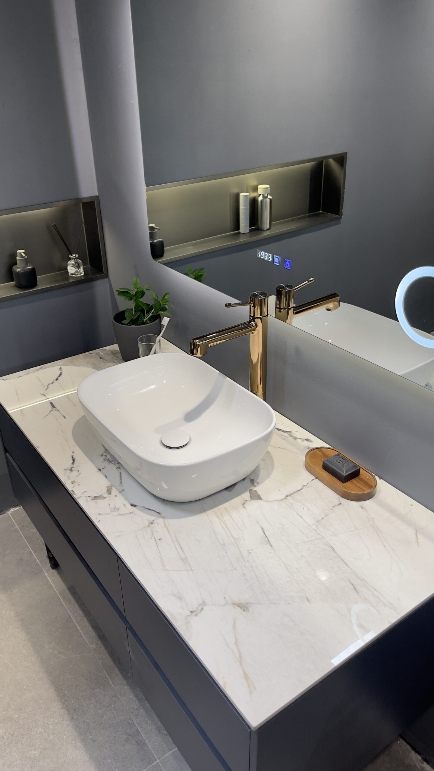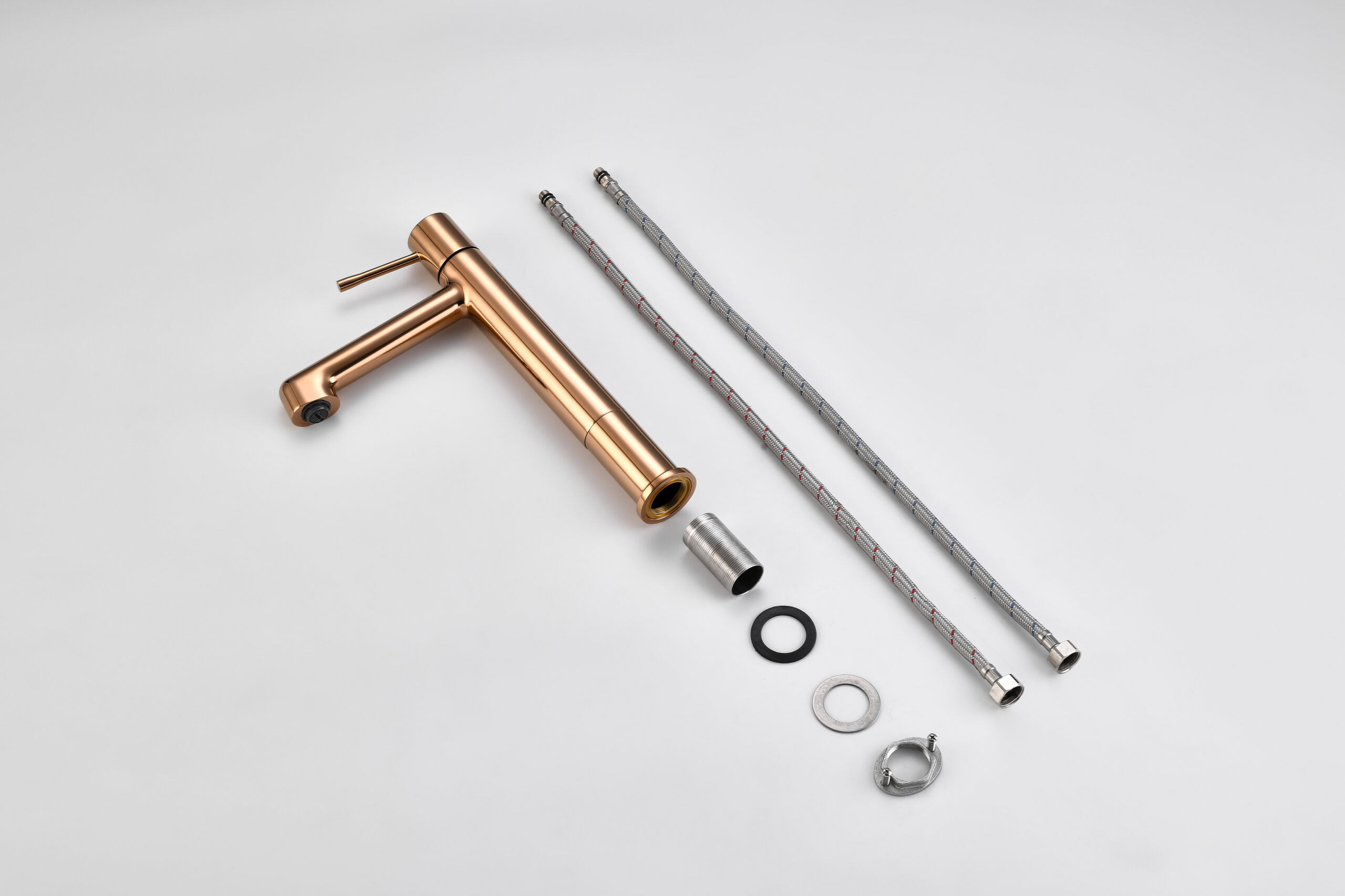 Elevate your bathroom design with this modern brushed gold tall basin faucet. Crafted from 100% solid brass, it delivers durable, safe, and corrosion-resistant performance. The elongated spout provides a broader washing area, making it ideal for vessel sinks and countertop basins.
