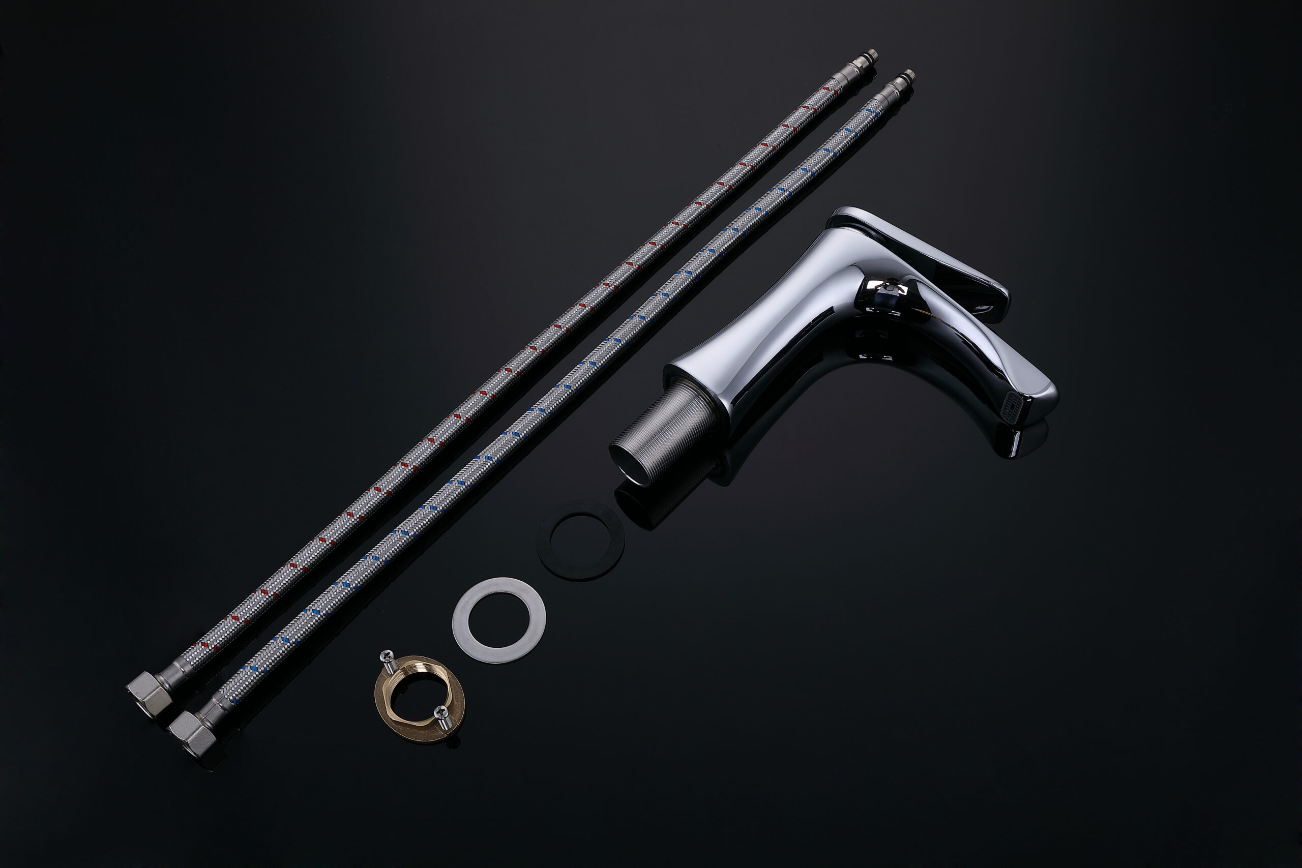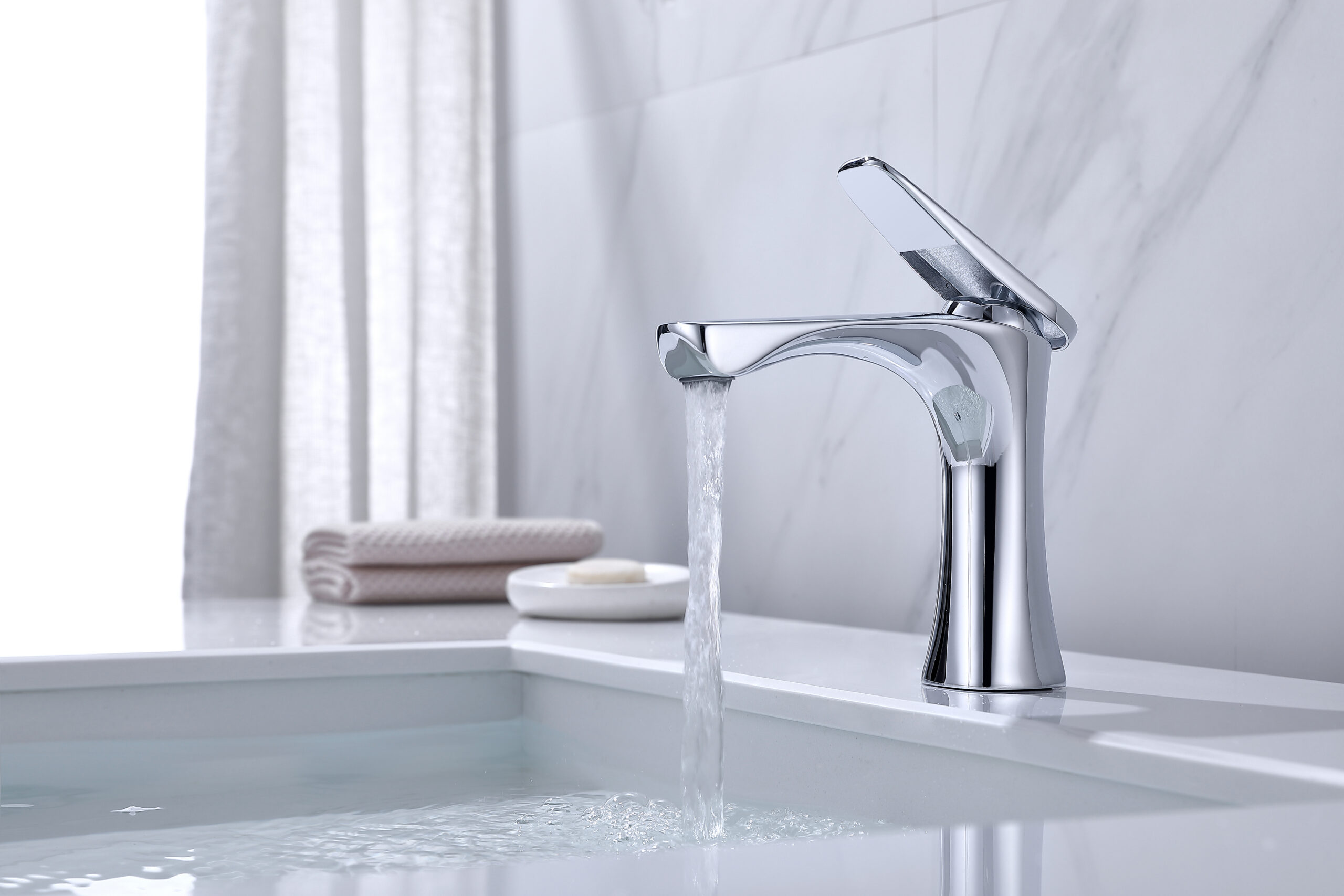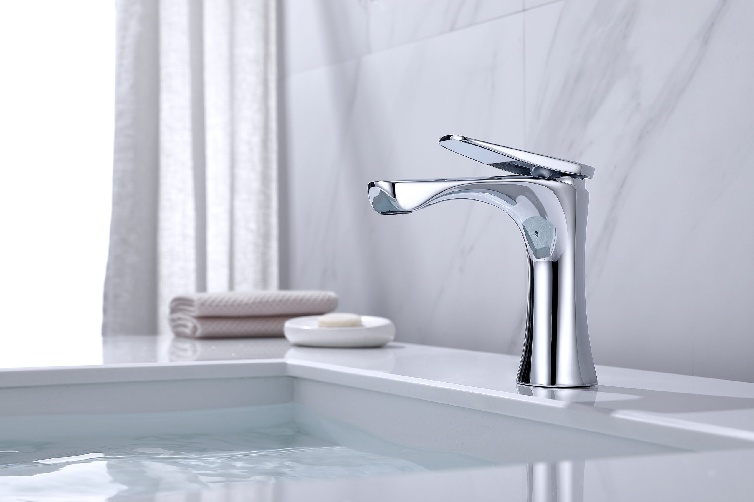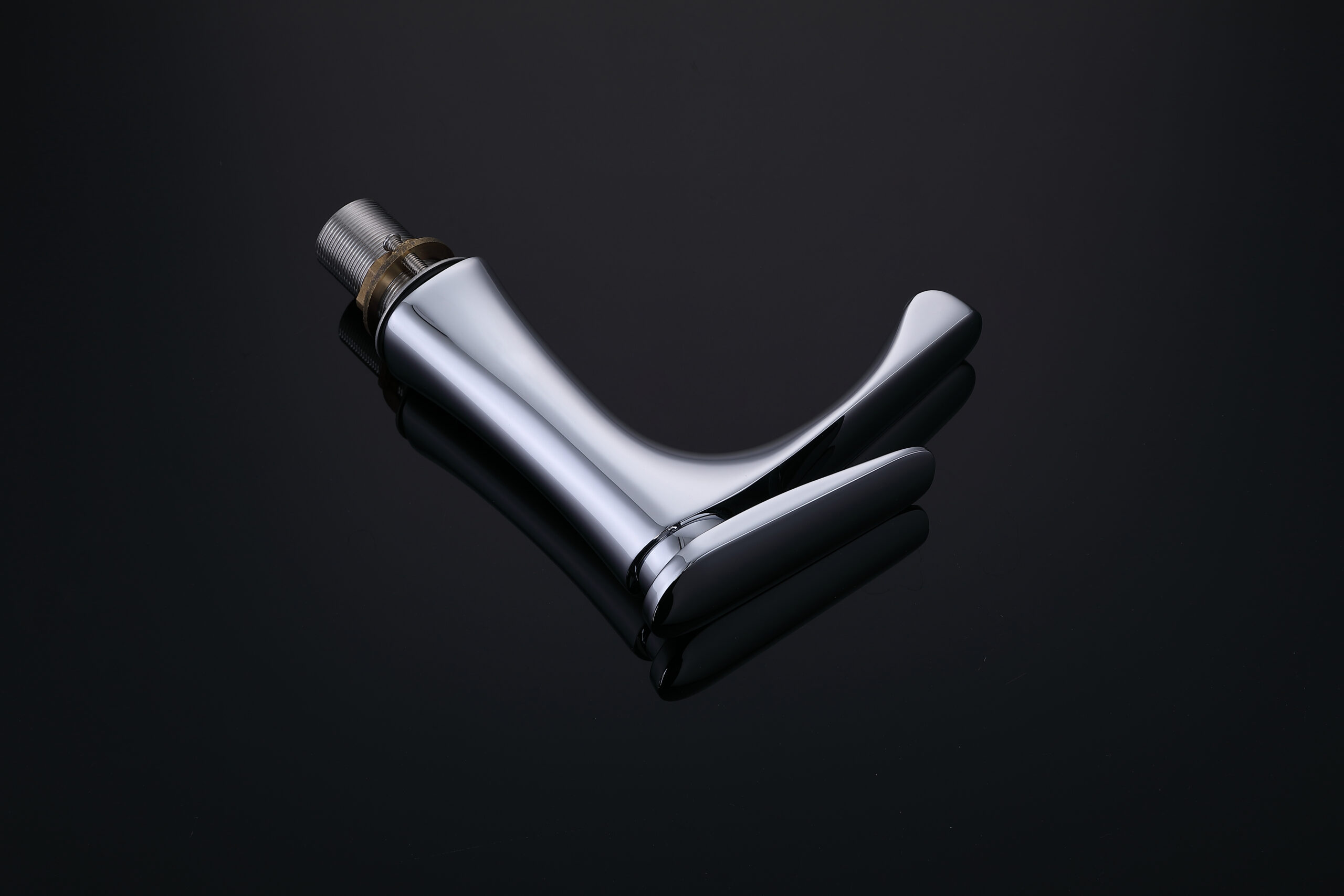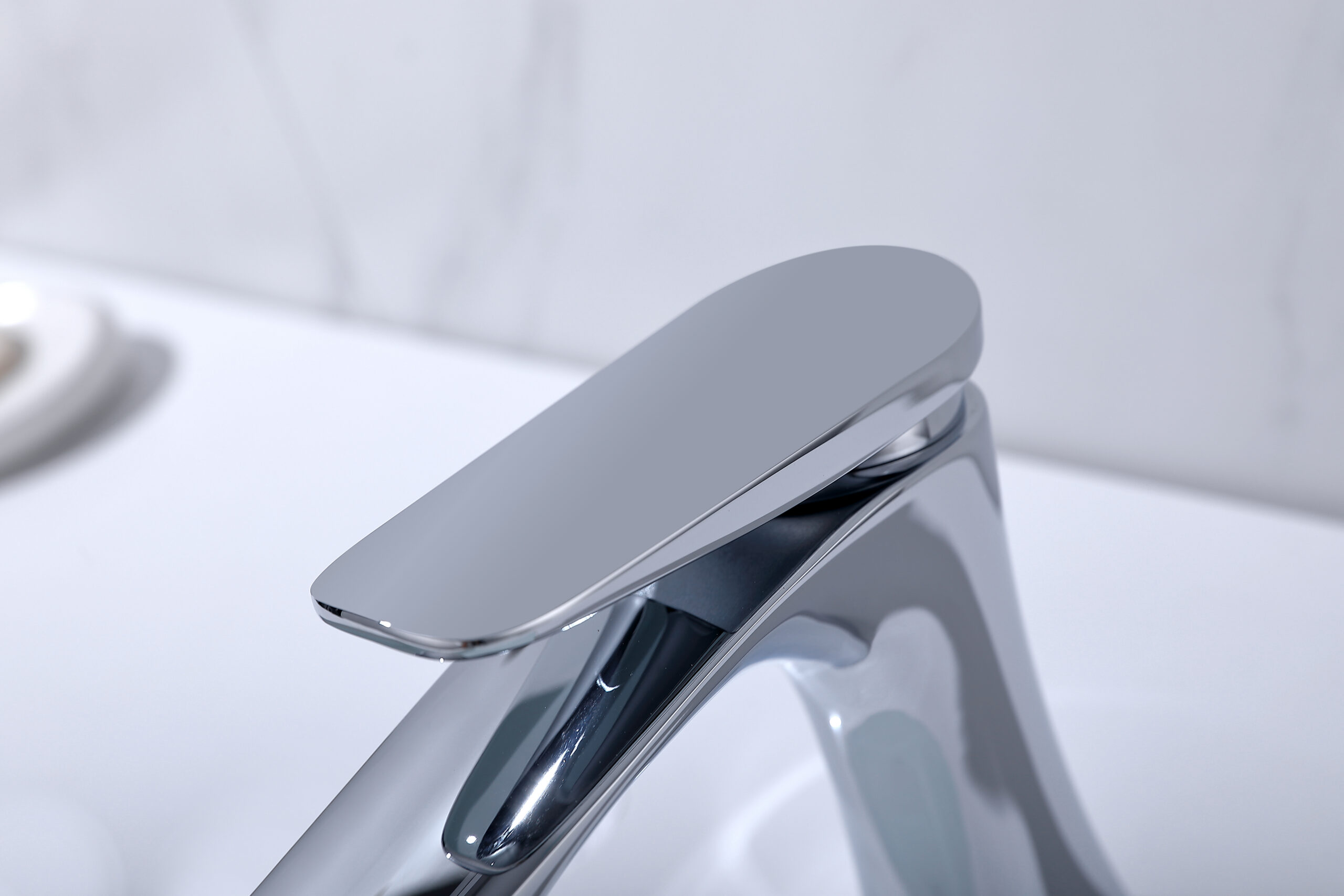This modern chrome single-handle basin faucet features a stylish, curved design crafted to elevate any contemporary bathroom. Built with a durable full-brass body and a high-quality ceramic cartridge, it ensures smooth operation and long-term reliability. The polished surface enhances resistance to corrosion and tarnishing, while the single-handle control allows for precise adjustment of water flow and temperature. Suitable for a wide range of standard single-hole installations.